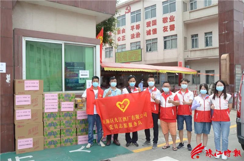 广东远航酒业集团公司党员志愿服务队慰问一线医护人员、防控工作者。