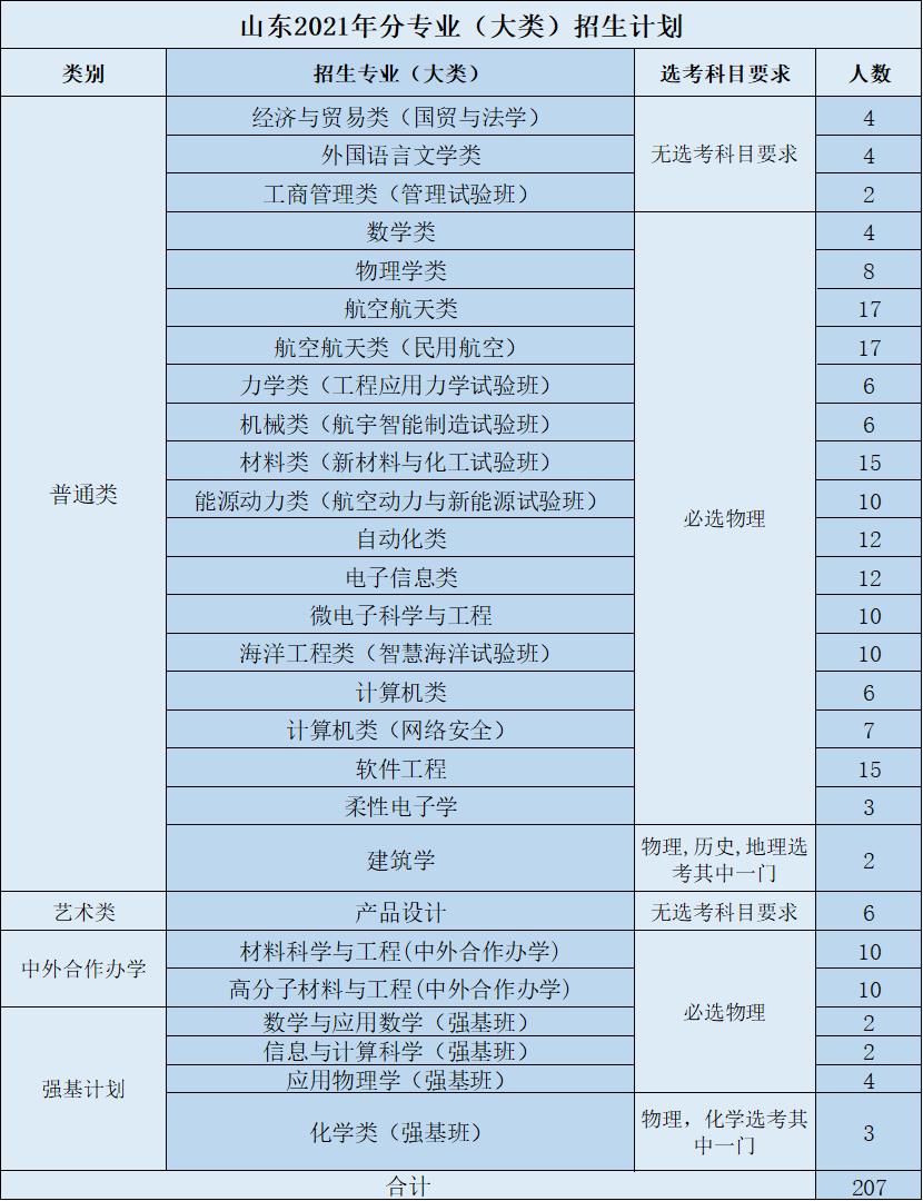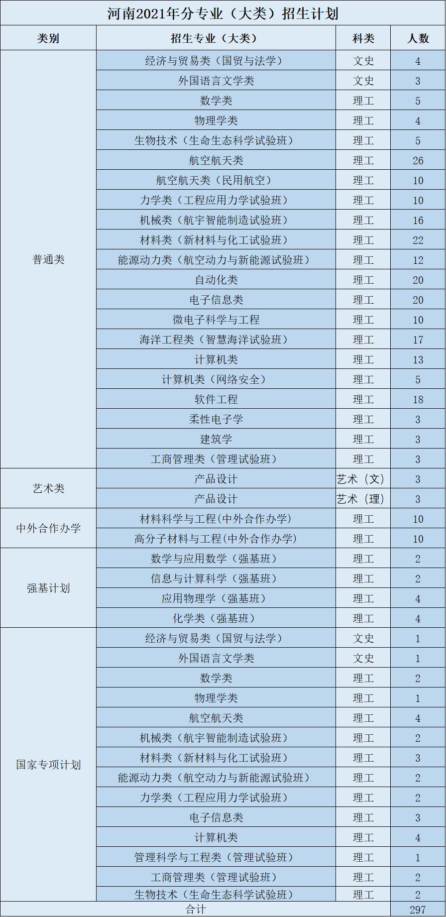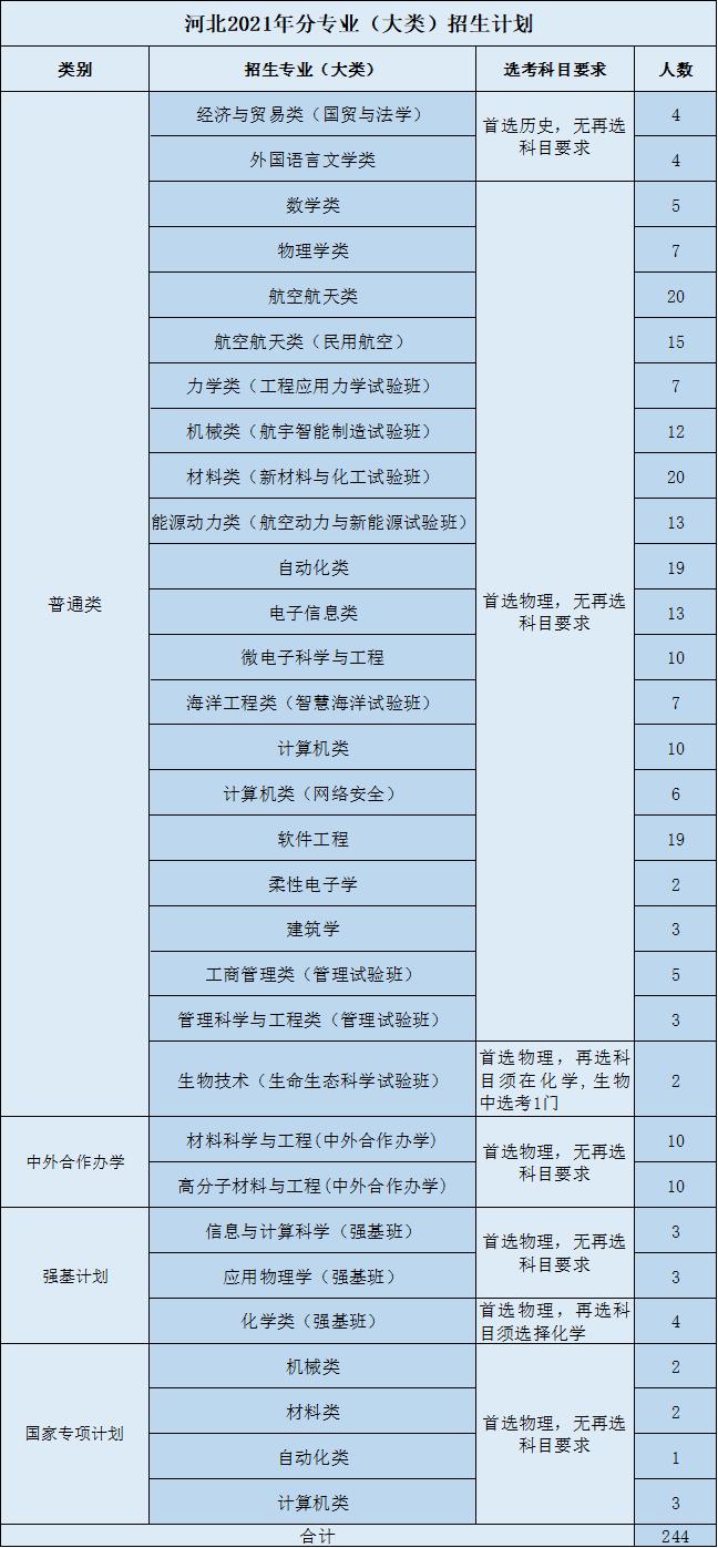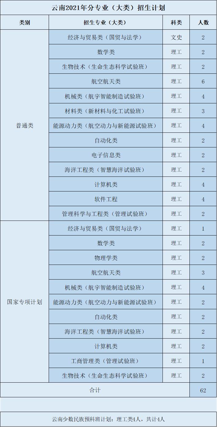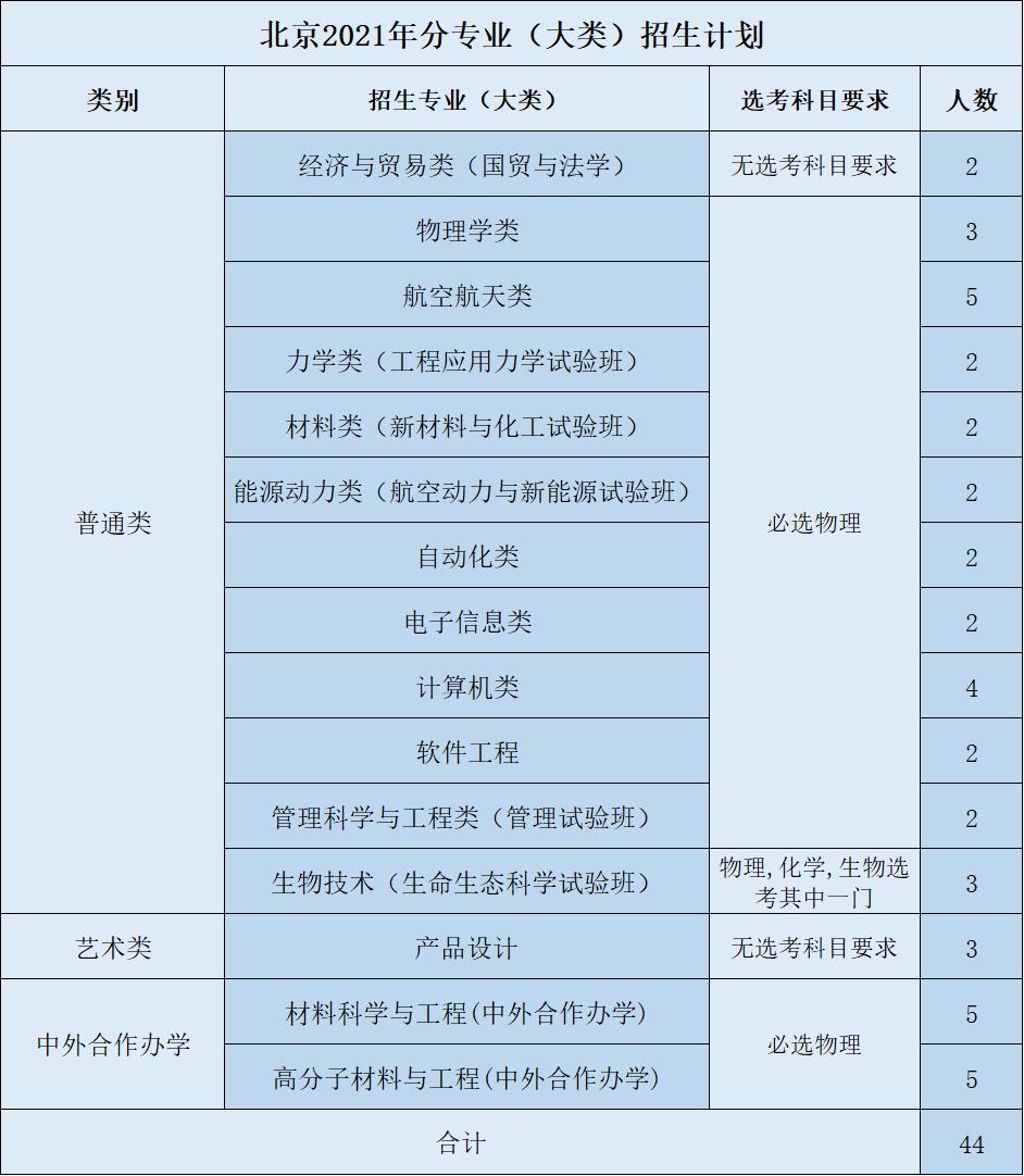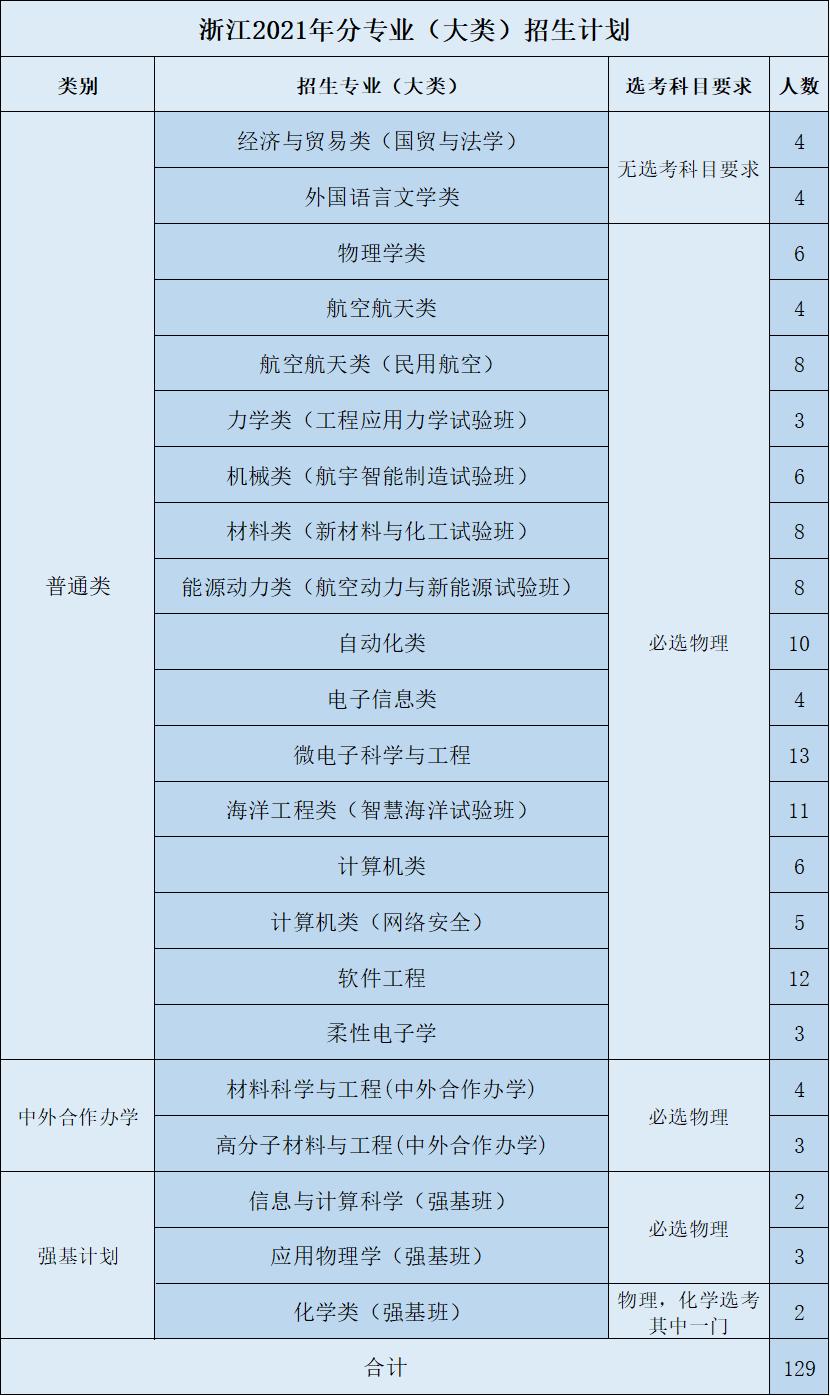 教育实验学院(荣誉学院)作为首批国家级“人才培养模式创新实验区”,具有前两年大类培养、灵活选择专业、本科生导师制、本研衔接培养模式、专设奖学金和广泛的国际交流机会等优势。坚持“协同育人、理工渗透、中西融汇、追求卓越”的培养理念,按照动态荣誉学籍管理,实施荣誉激励计划,聚全校之力培养国家重大工程、前沿科技的拔尖领军人才。面向全国在普通一批招生,工科交叉卓越计划按照航空航天类和计算机类招生90人,基础交叉拔尖计划按照材料类招生30人。