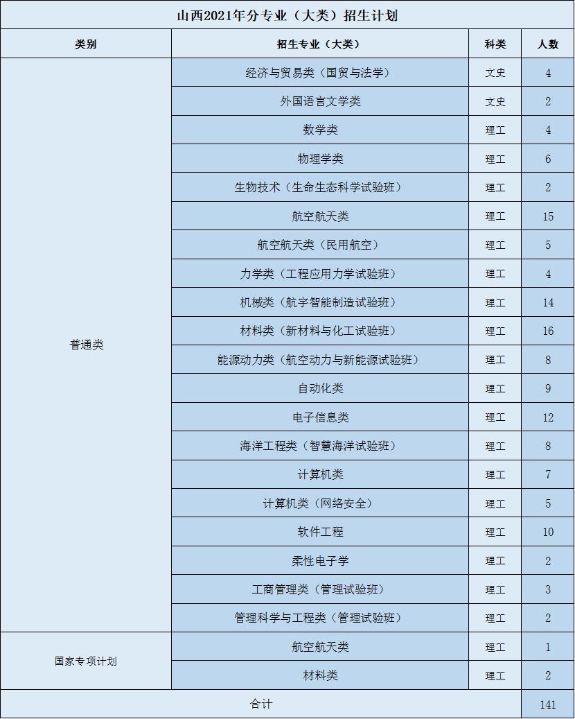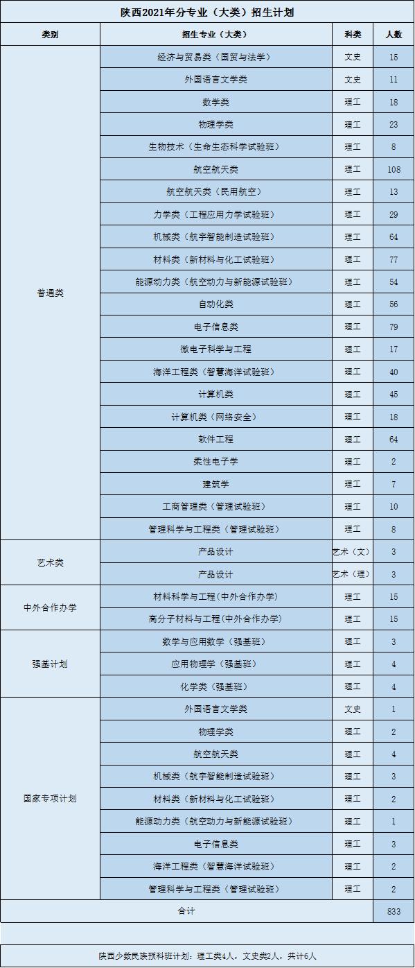 权威发布丨西工大2021年分省、分专业(类)招生计划
