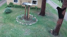 监控视频中,一只熊来到这户人家的院子里,然后约克夏犬贝拉从屋里冲出来,熊吓得乱跑,然后迅速爬到一棵树上,贝拉在树下冲它狂叫。在镜头之外,主人试图叫回狗狗,最终,狗狗回到屋里,熊趁机跳下来逃走。