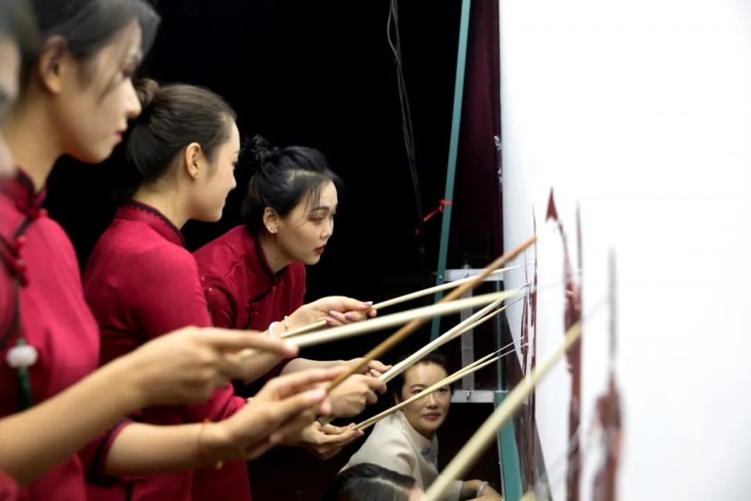 台前幕后,几位来自君莲幼儿园的90后老师表演投入,短短3个多月,她们用业余时间学习排练,不仅是因为发自内心的喜爱剪纸影戏,更是为了学好了能回去教学校的小朋友们。
