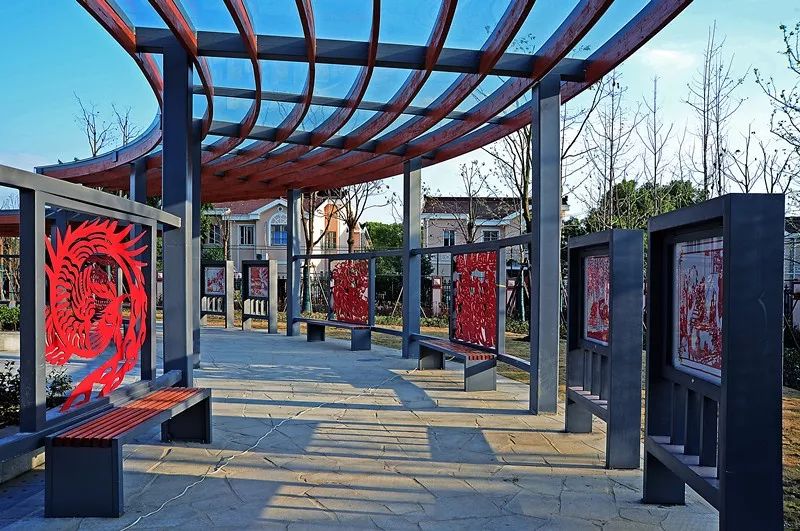 剪纸与生活共生颛桥剪纸作为非遗,不止在剧场里、学校里,更在老百姓的生活中,深入每一名闵行人的心间。为了更好保存与发扬这种文化,颛桥剪纸文化公园应运而生。通过将剪纸元素融入绿地花草之中,让剪纸与市民的生活共生。