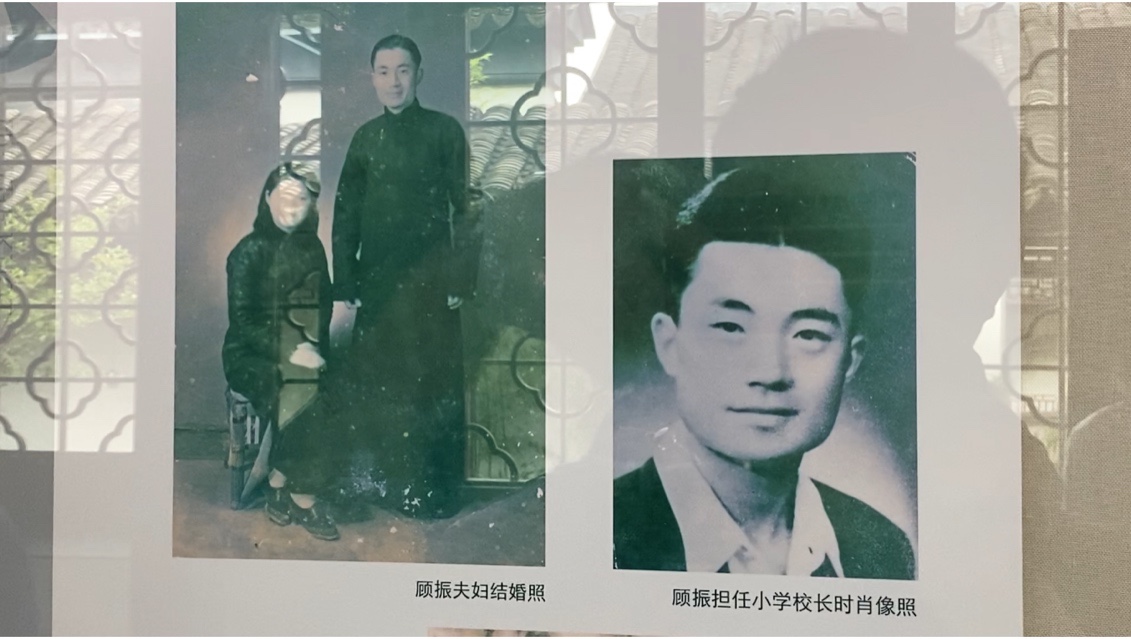 顾振担任小学校长时的肖像照、顾振夫妇结婚照 澎湃新闻记者 俞凯 图