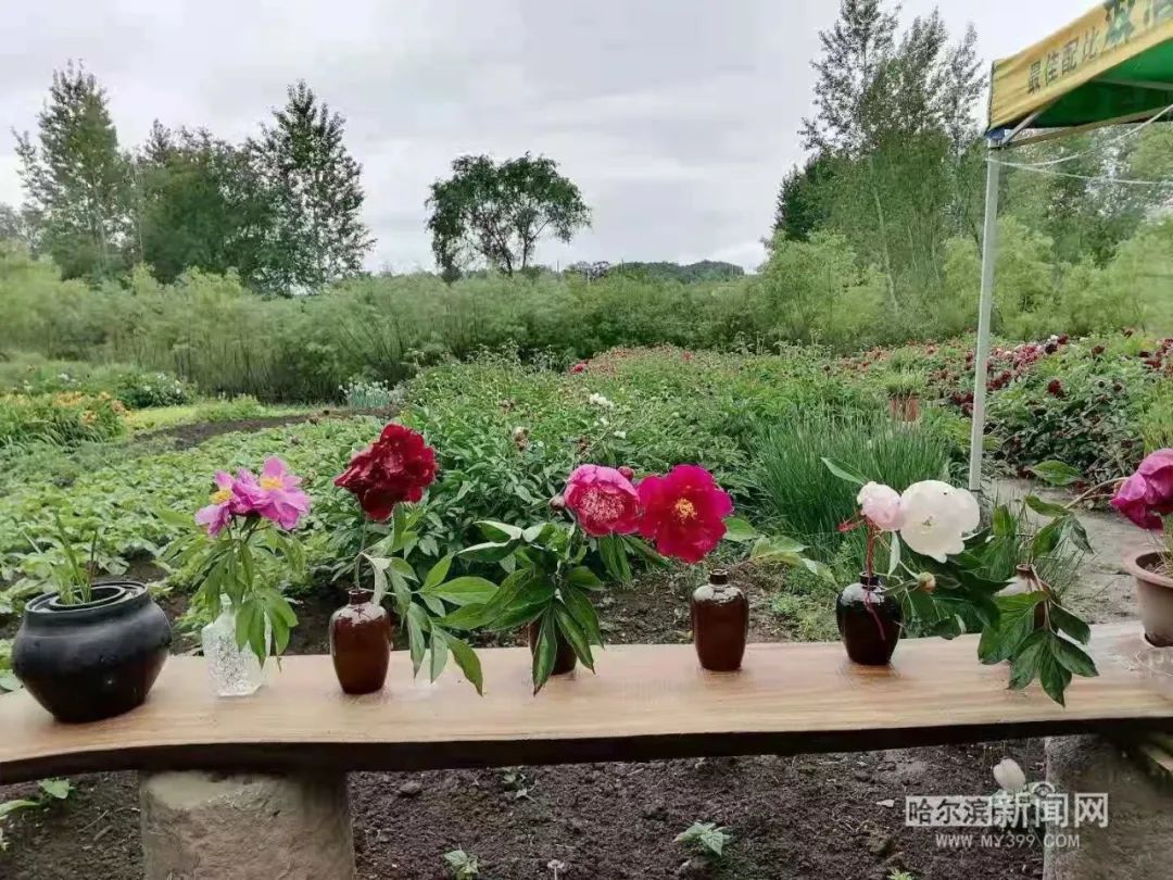 6月,宾县经建乡头道村大毛家屯内,宾县毛家中草药种植专业合作社的芍药花开满园,竞相绽放,引来游客赏花游玩。