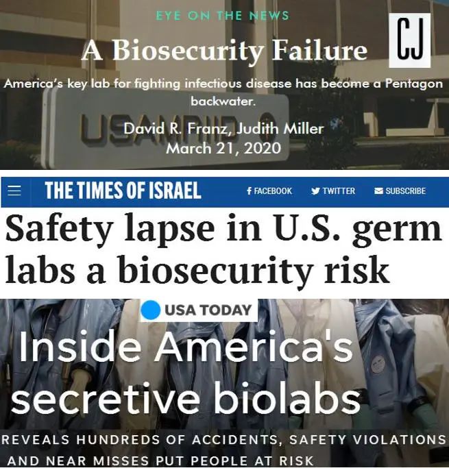 例如,2014年,佐治亚州美国农业部东南禽类研究实验室两次出现空气净化过滤装置故障,使研究人员直接暴露于H5N1禽流感病毒毒株面前;2020年4月,乌克兰方面称,15个美军生物实验室在乌开设后,该国境内暴发了“危险的疾病”。