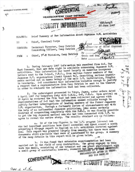 而接受日本二战期间生物和化学武器“遗产”的,恰恰正是德特里克堡。