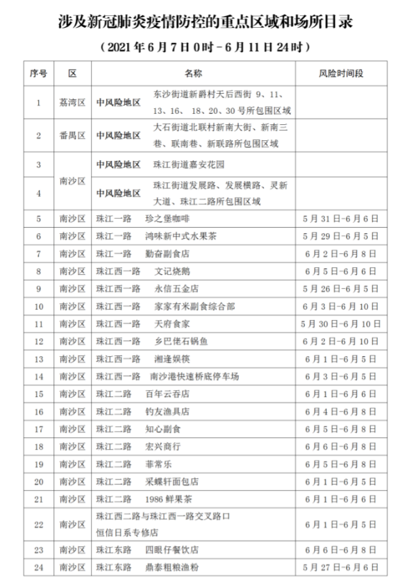 (原题为《关于2021年6月7日-11日期间新冠病毒感染者涉及的重点区域和场所的通报》)