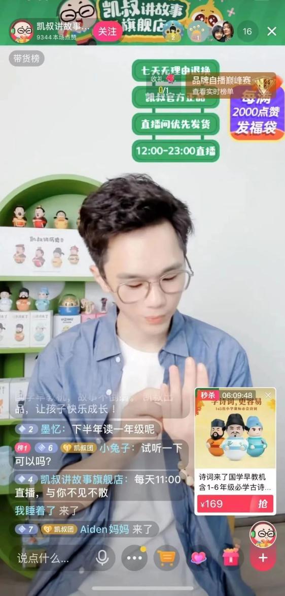 以凯叔为例,除了他本人的IP,《凯叔·诗词来了》还推出了“麦小麦”和“麦小米”等虚拟IP形象,形成关联IP矩阵。“凯叔讲故事”的产品也从音视频、动画内容衍生到童书、课程、智能听教机等软硬件产品,直播间为这些产品提供了更高效的展示空间。