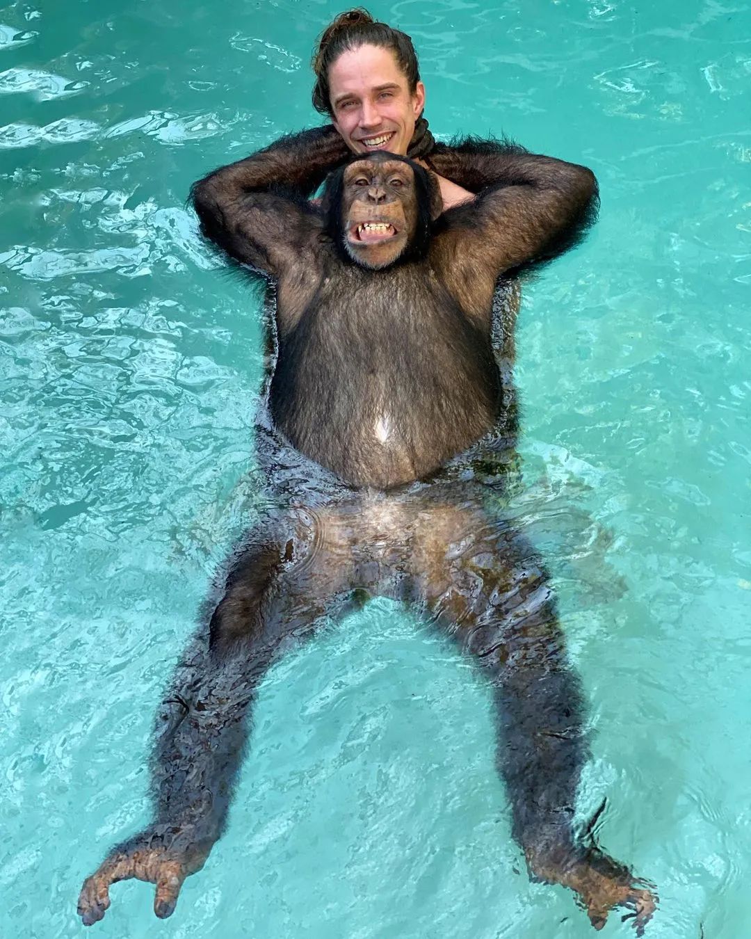 闲暇之余,再教猩猩朋友游个泳啥的: