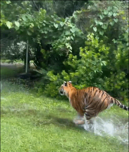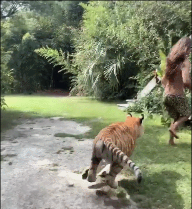 和老虎一起奔跑嬉戏