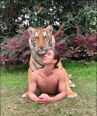 从他发的日常不难看出,他喜欢光着膀子和动物们一起玩耍,在他看来,这样可以更好的融入到动物之中。