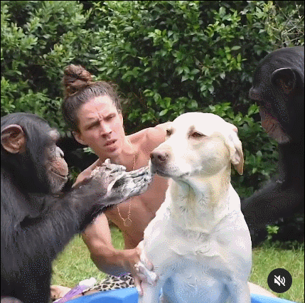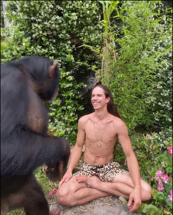 动物们和Kody小哥之间仿佛有了一层家人般的关系,一般来说,动物们都是很护崽的,在野外有任何生物靠近它们的孩子,动物家长都会非常不爽,但是这条定律在Kody小哥这里完全不成立。猩猩们会放心的将自己才出生的小宝宝交给Kody: