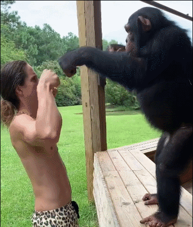 和猩猩如来个兄弟间的击掌: