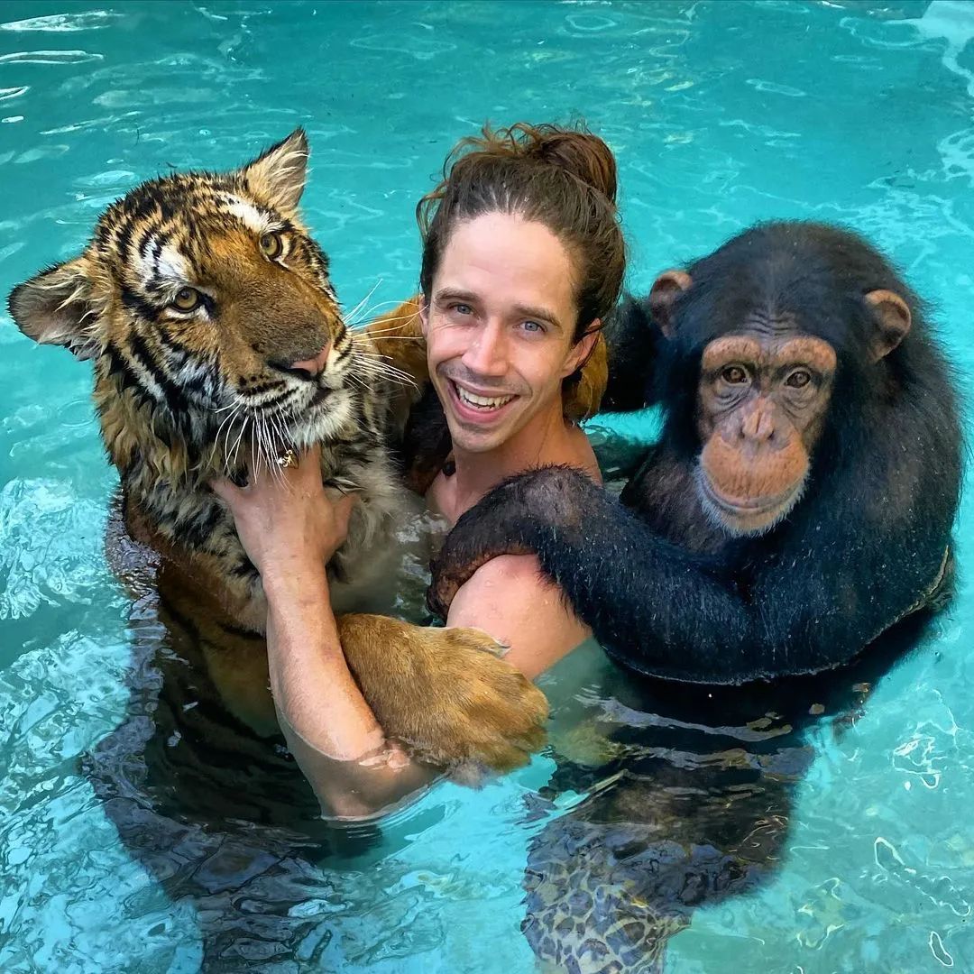 别人养猫他养老虎,别人带娃他带猩猩:这小哥,泰山本山无疑