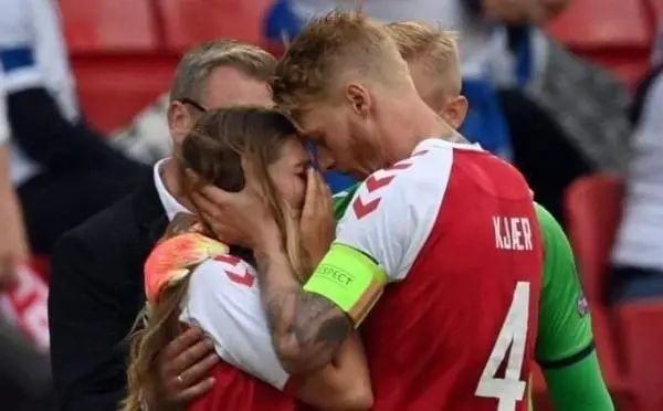 彼时,现场的转播镜头拍到了不少球迷已经崩溃落泪,而场上的丹麦球员也难以控制自己的情绪,不少人捂住自己的脸,但是他们尽力保持着冷静,并且为埃里克森祈祷。