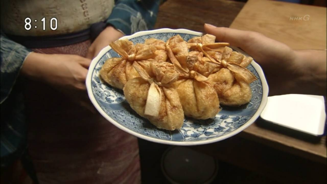 出现在日剧《多谢款待》里的炸纳豆福袋主要食材是纳豆、山药、白砂糖、味噌芝麻油、芥末、花生、豆腐福袋。豆腐福袋就是可以往里面加东西的空心豆腐,加入后用绳子绑起来。