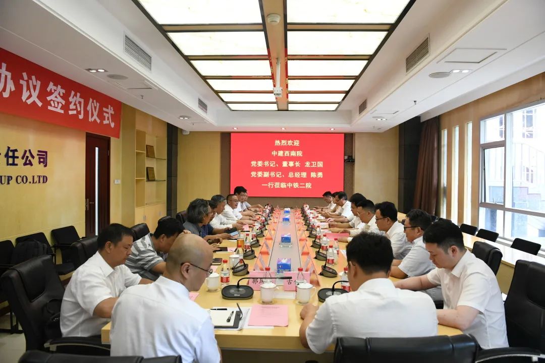 中建西南院党委委员、副总经理陈一曦,交通建筑技术总监杨国,总建筑师邱小勇;中铁二院党委常委、副总经理秦小林,副总经理杜建军,副总工程师金旭伟,副总经济师、经营计划部部长黄炯, 副总经济师、建筑工程设计研究院院长杨伯龙,以及双方相关部门负责人出席签约仪式。