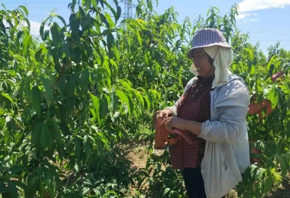 三年前种下的只有拇指粗小石各庄的黄桃树已蔚然成林,部分黄桃树已经结果,为保障水果品质和无公害化,工人正在给每个成长期的黄桃套袋。