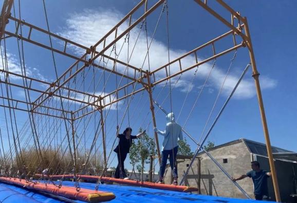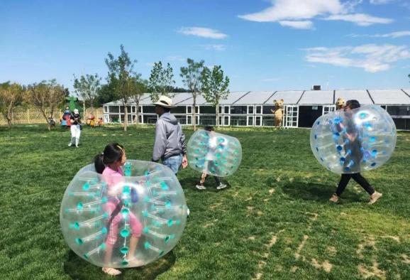 头顶蓝天白云,脚下绿草如茵,一声哨响,一场趣味足球赛在铭石源亲子农场拉开序幕。这是铭石源农业综合体打造的乡村旅游项目,还包括可以十几个人同时摇荡的网红秋千,感受亲手制作石磨豆腐乐趣的农科馆等。