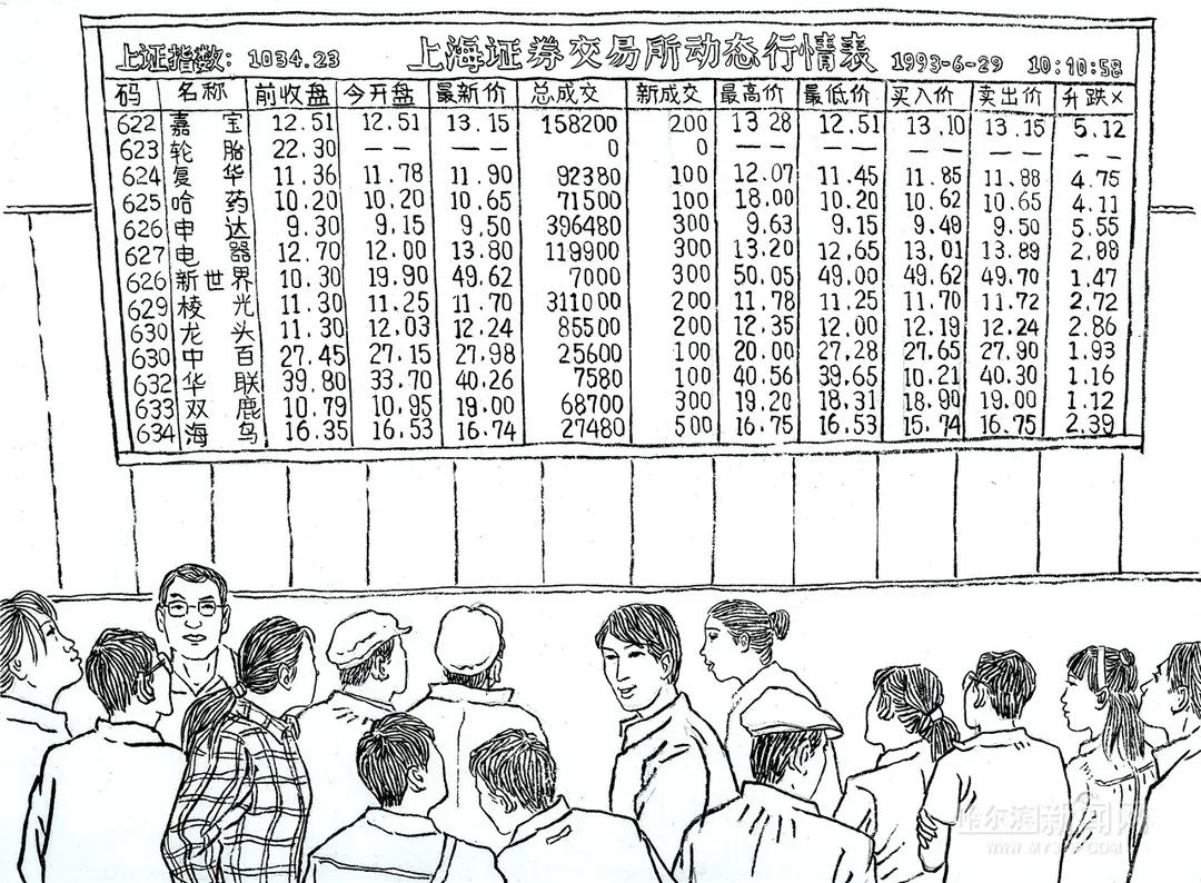1990年9月1日,哈尔滨医药集团股份有限公司按每股1元的价格向社会个人发行第一期股票6500万股。1993年6月29日,哈药股票在上交所正式上市,哈药也成为全国医药企业第一家上市公司。股票上市后,一夜之间哈药股票造就了上万个万元户,有人甚至成为百万元户。作为新生事物,哈尔滨新建的股票交易大厅每天都会有许多市民来此交易。