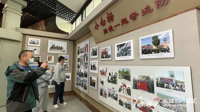 参观者们正在小白杨哨所展馆内浏览图片资料。石榴云/新疆日报记者 杨舒涵 摄1982年春天,在哨所服役的锡伯族战士程富胜回乡探亲,将哨所周围的环境及官兵卫国戍边的故事讲给母亲听。为了激励儿子在边防安心戍边,母亲特地挑选了10株白杨树苗,让儿子带回哨所栽种。她嘱咐儿子,一定要像白杨树一样扎根边疆。