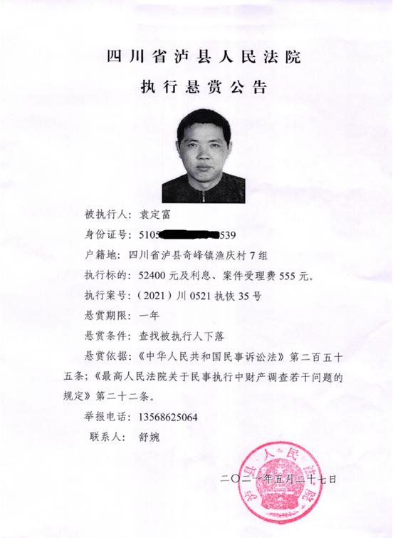 悬赏条件:凡提供被执行人准确位置信息,协助法院找到被执行人的,悬赏金额1万元。悬赏期限:一年,自2021年5月27日至2022年5月26日止。