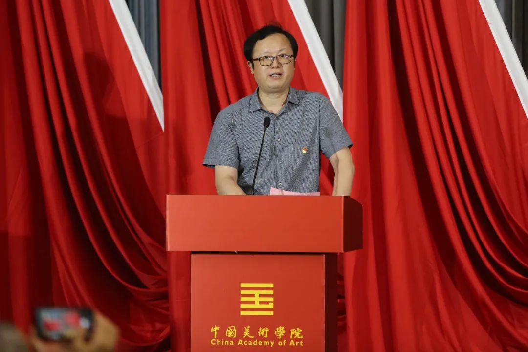 党委书记金一斌讲话五十余载风雨兼程,初心使命历久弥新。金一斌在讲话中指出,中国美术学院的校史与党史、新中国史和社会主义发展史紧密相连,期间涌现出许许多多兼具艺术大家和革命先辈身份的老党员。他们高擎“以人民为中心”“为艺术战”的艺术旗帜,以大爱之心育莘莘学子,以大美之艺绘传世之作,为党育人、为国育才,他们是人类灵魂的双重工程师,也是国家宏伟蓝图的描绘者,共和国历史的书写者。他们书写了中国共产党百年辉煌历史最精彩、最璀璨、最厚重的篇章,是党和国家兴旺发达的坚强脊梁,也是学校事业发展的定海神针,是年轻党员赓续前行的指路明灯。