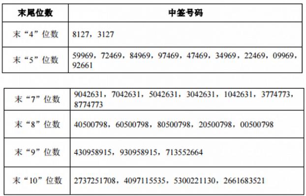 16日晚间,南京银行披露公开发行可转换公司债券网上中签结果,凡参与南银转债网上申购的投资者持有的申购配号尾数与上述号码相同的,则为中签号码。中签号码共有245.79万个,每个中签号码只能认购1手(1000元)南银转债。具体如下:
