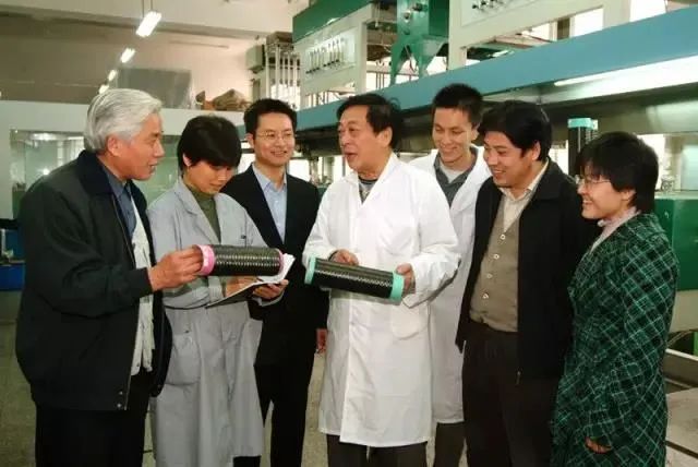 潘鼎教授(左四)团队在碳纤维一线开展研究东华大学材料学院潘鼎教授领衔碳纤维研究团队成功研制“航天级高纯粘胶基碳纤维”助力导弹一飞冲天,填补国内空白,让我国成为世界上第三个掌握该项技术的国家。