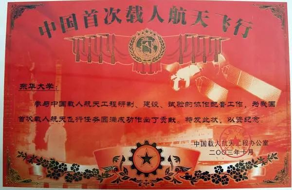 我校团队参与“神州五号”飞船材料研制获嘉奖东华大学材料学院韩文爵高级工程师团队所研制的“航天飞行器高可靠钝化玻璃”成功应用于“神舟五号”载人飞船,陪同我国航天英雄杨利伟首次飞入太空。