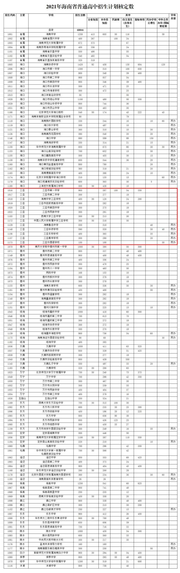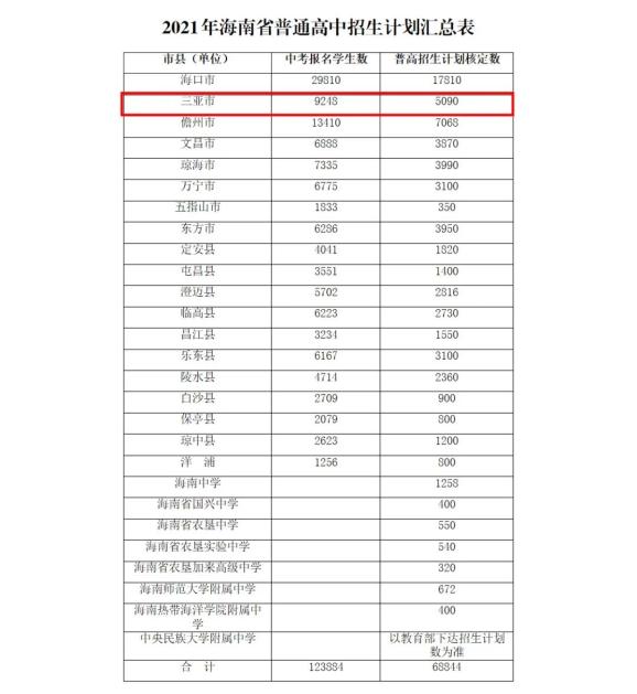 原标题:《三亚招5090人!2021年海南省普通高中招生计划来了》