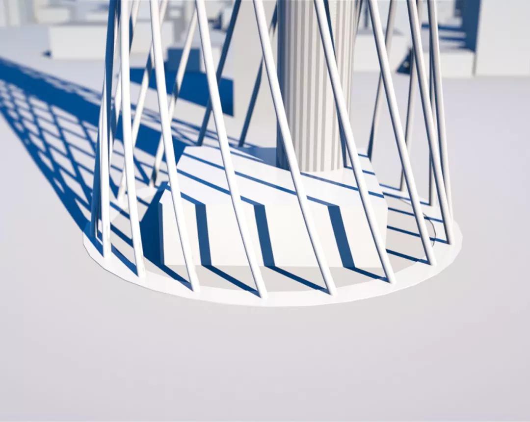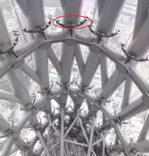 但纤细的腰身有一个缺点:高塔可能会发生变形。为了避免变形,工程师在立柱内侧增加了钢环梁,形成坚固的格栅结构。