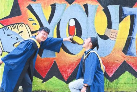 观江台墙绘色彩缤纷的观江台墙绘,给你的毕业照创意提供多样思路。