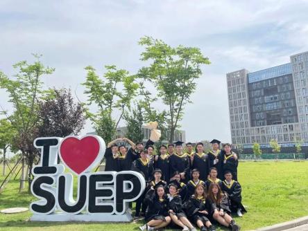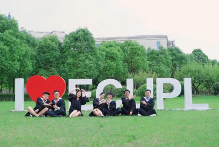“I❤ECUPL”地标一颗红色的爱心,六个白色的字母,满眼嫩绿的草地,是每天上课途中都能偶遇的风景。
