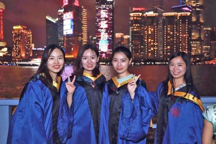 作为一所没有“围墙”的高校,上海纽约大学与上海这座城市融为一体。每年毕业季,毕业生除了在校园拍照留念外,举办毕业典礼的地方也是学生们拍照的热门合影点。此外,2021届毕业生还在点亮紫罗兰校色的东方明珠前合影。上海商学院