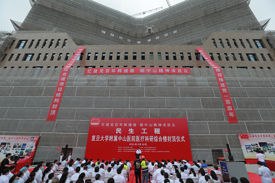 6月18日,复旦大学附属中山医院医疗科研综合楼结构封顶。 本文图片均为复旦大学附属中山医院 供图