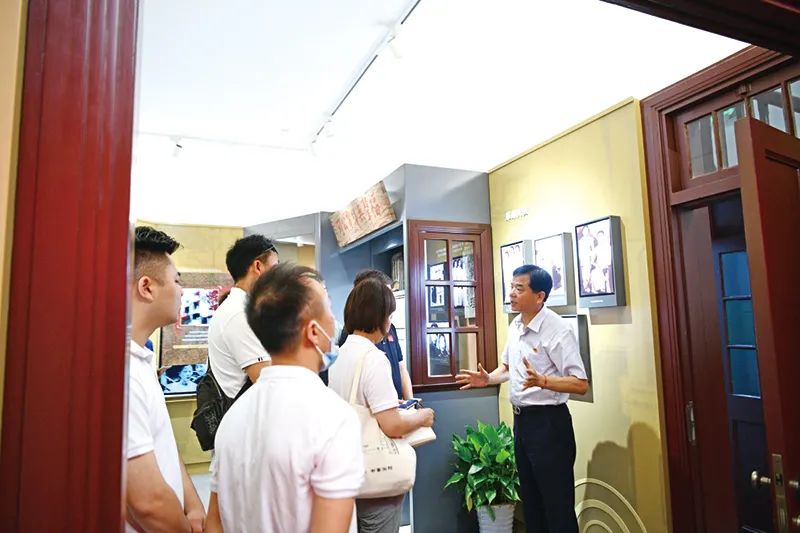 上海李白烈士故居名誉馆长吴德胜(右一)正在向游客介绍李白事迹。而在距离浏阳千里之外的上海虹口区鲁迅公园旁,黄渡路107弄15号,是一栋看起来毫不打眼的红砖老式小楼。小楼门口悬挂的“李白烈士故居”牌匾,述说着它的深邃和内涵,历经的岁月沧桑与变幻,承受的时光洗礼与凝重。这栋小楼,每天迎接着来自全国各地的各界人士。