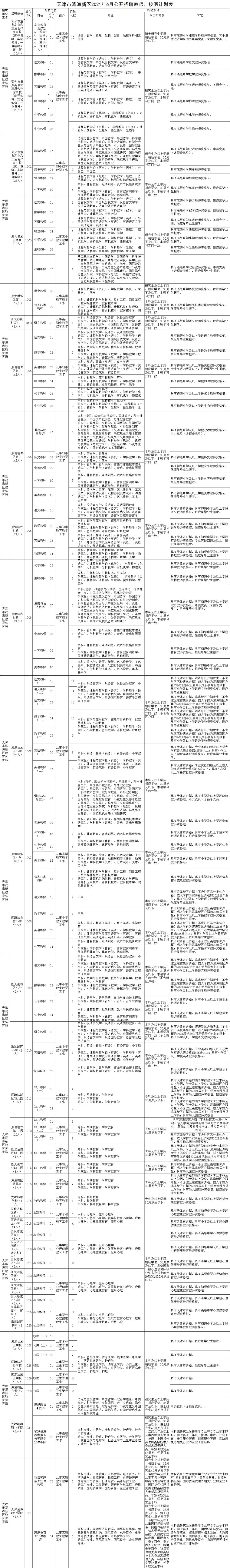 招聘岗位和数量详见《天津市滨海新区2021年6月公开招聘教师、校医计划表》。