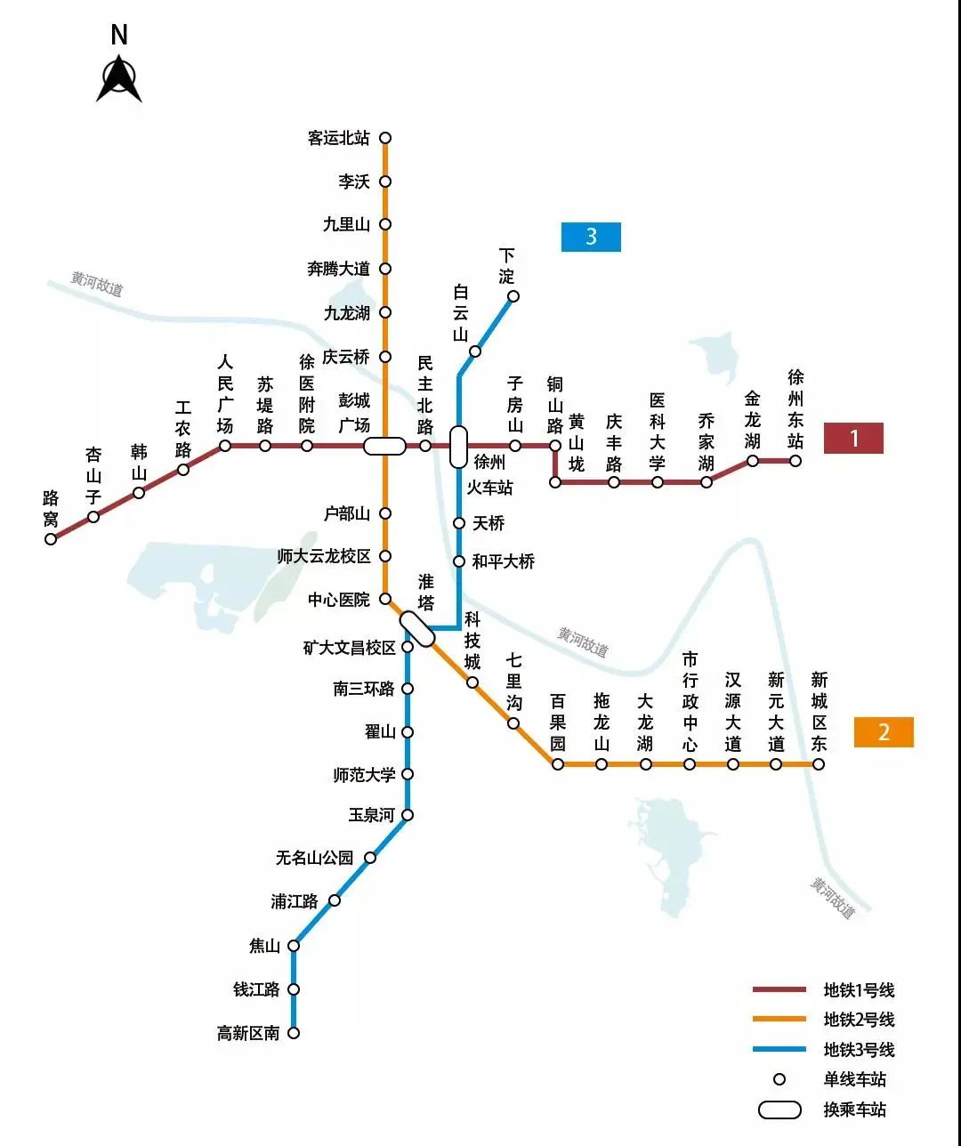 据了解,徐州轨道交通3号线一期工程北端起于下淀站,沿下淀路—大庆路—复兴路—下穿古黄河—淮塔东路—解放南路—北京路—长江西路—黄山路—银山路,途经徐州火车站、淮海广场、翟山片区、矿业大学、铜山新区,止于高新区南站,全长18.13km,共设16座车站,与既有1号线在徐州火车站换乘、与2号线在淮塔站换乘。