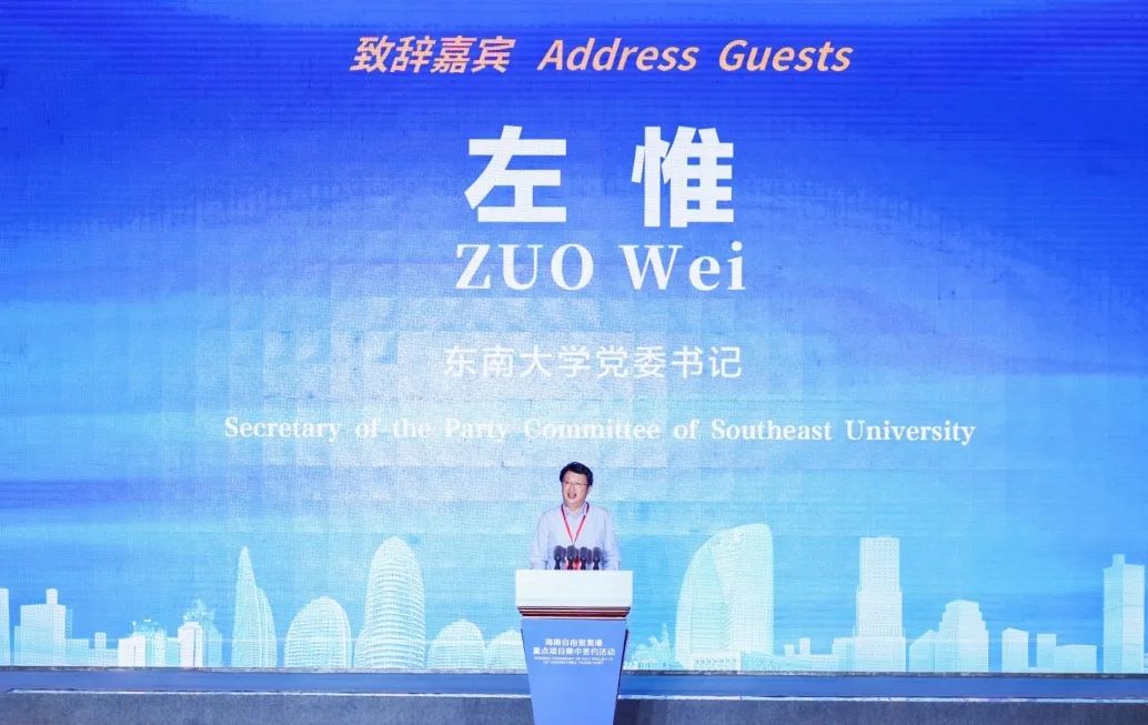 左惟在致辞中对海南省委、省政府长期以来给予东南大学的信任和支持表示感谢,并介绍了东南大学的发展概况、近几年取得的成绩,特别是近年来加快推进转型发展、提升服务国家战略能力、积极打造国家战略科技力量、参与重大战略领域和工程等情况。他指出,建设海南自由贸易港是习近平总书记亲自谋划、亲自部署和亲自推动的改革开放重大举措。站在崭新的历史起点,海南正迎来前所未有的发展机遇。东南大学高度重视与海南省的合作,与海南省建立了良好的合作基础。