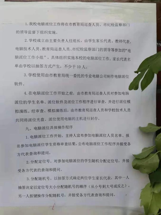 先后公布了电脑派位招生方案