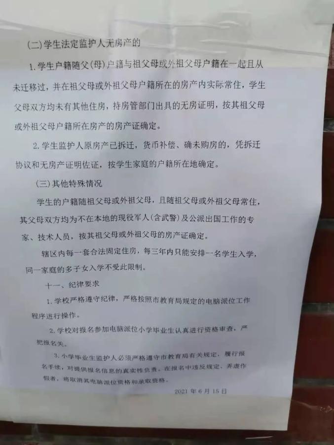 5.从2016年起,以初一年级为基点,同一套合法固定住房每三年内只能安排一名学生报名,参加电脑派位,同一家庭的多子女除外。
