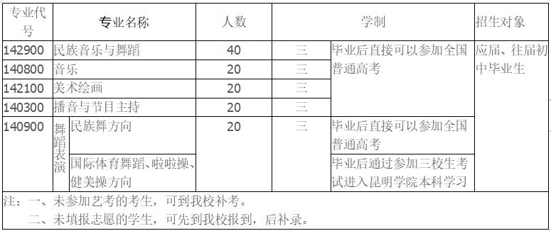 2021年昆明市艺术学校招生计划表,总计划:340人