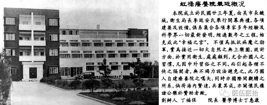 1933年医院建成并正式开放,为了纪念叶子衡的父亲,取名为“澄衷肺病疗养院”,是当时上海第一所结核疗养院,也就是今天的上海市肺科医院。几乎同一时间,大约在1932年,在上海另一处,丁福保、丁惠康父子正在筹建虹桥疗养院。这家疗养院后来成为了上海滩首屈一指的肺病治疗康复机构。1934年6月,虹桥疗养院竣工,其建筑被建筑史家普遍认为是中国近代史上“最具代表性的现代主义建筑”。主楼的每一间房间都获得充足的阳光,符合当时肺结核治疗中流行的“日光疗法”;使用的橡皮地板,有效的减少了噪音,为患者创造了良好的康复环境。1958年虹桥疗养院与怡和医院合并为淮海医院,1961更名为上海市徐汇区中心医院。