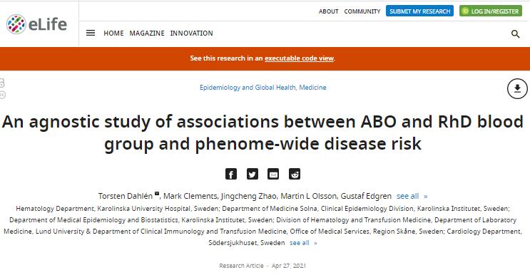 4月27日,发表在《eLife》上的一项最新研究中,瑞典研究团队对510万人和超过1200种疾病的数据进行分析,发现特定血型与49种疾病之间存在相关性。