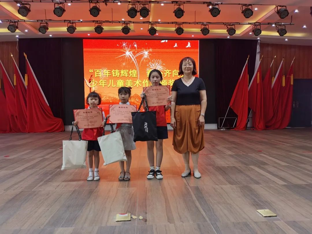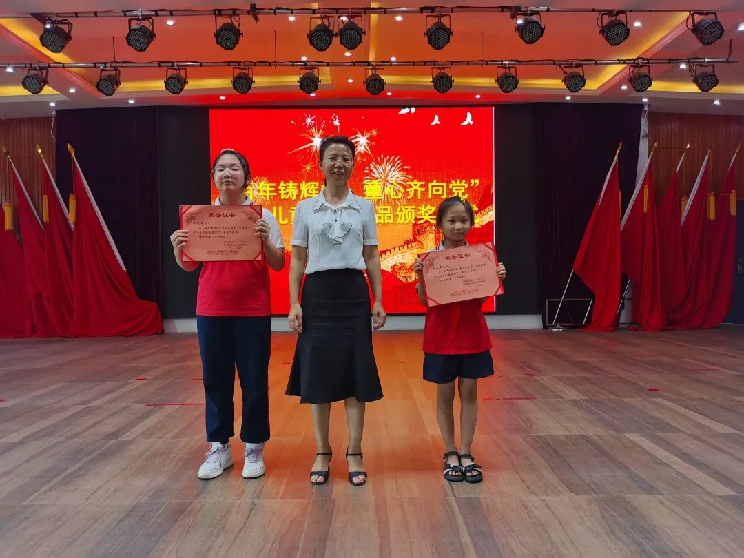 颁奖仪式上,与会领导对“百年铸辉煌 童心齐向党”浮梁县少年儿童获奖美术作品和“党在我心中”亲子阅读获选作品获奖的家庭和学生代表进行了颁奖。