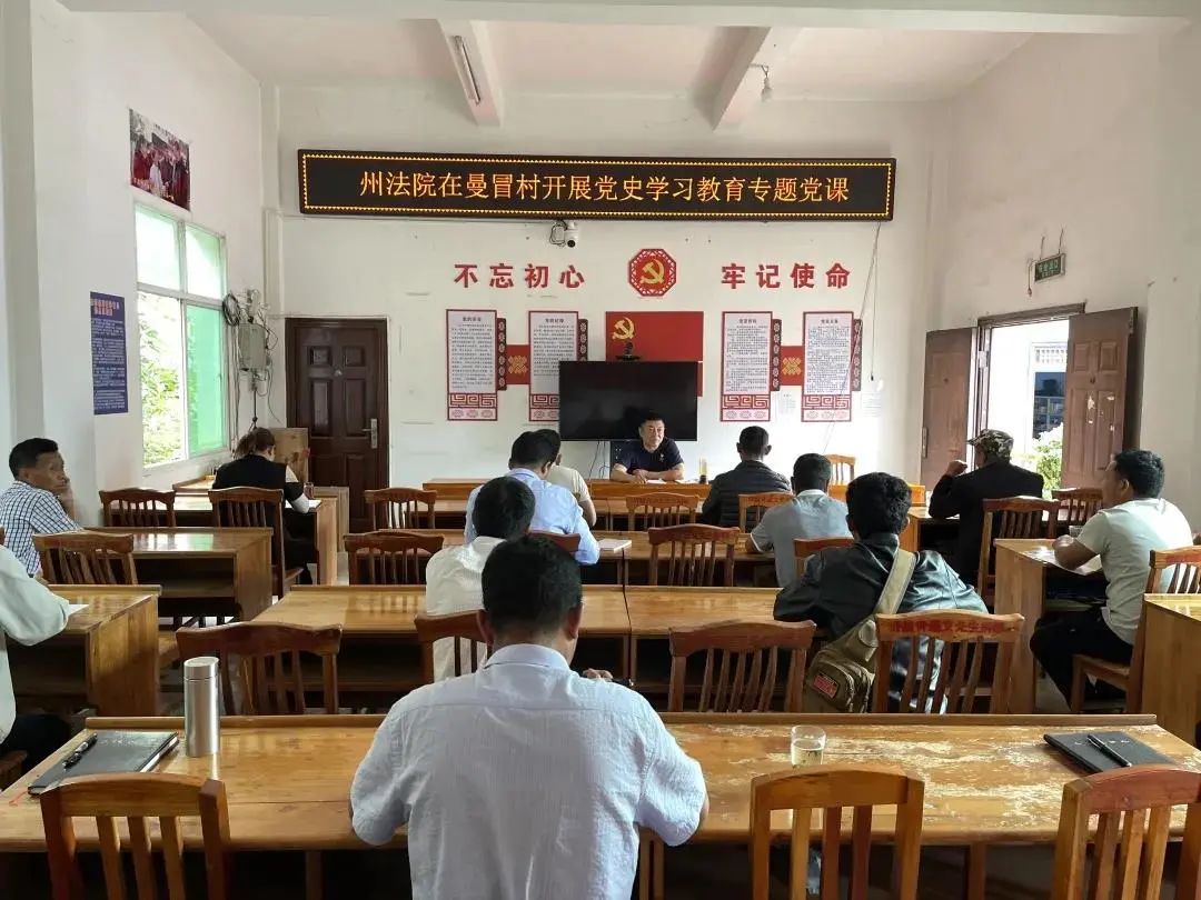 6月16日,德宏中院驻陇川县城子镇曼冒村第一书记兼工作队队长陈波同志在曼冒村开展党史学习教育专题党课活动