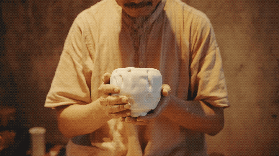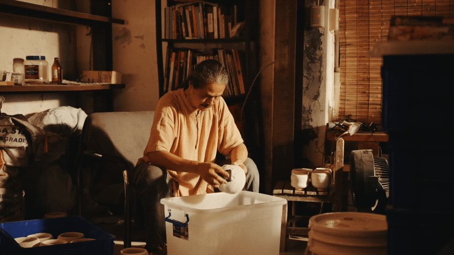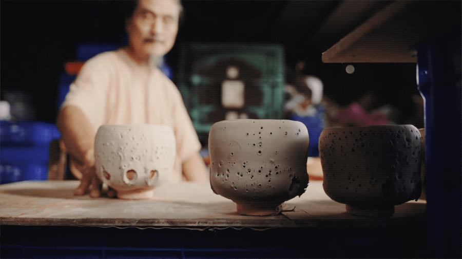 50岁那年,陈九骆的人生遭逢巨变:生意失败、失去婚姻、变卖房产。生命的一切归零,让他决定全身心投入做陶,从基本功开始研究,闭关修行,用最原始的方式尝试,把每一次的温度、氧化还原都记下来,慢慢用古法摸索长达十几年。