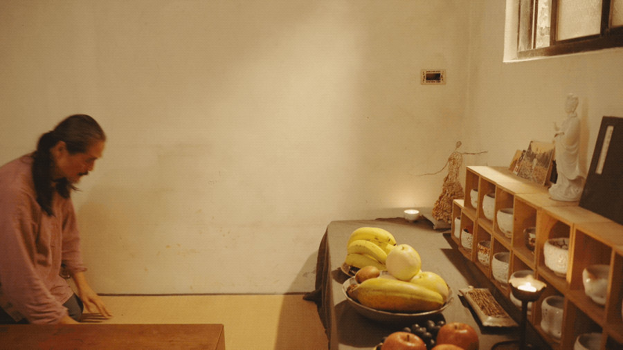 唯一完整的角落就是佛堂,陈九骆每天都会准备好瓜果,上香礼佛,偶尔在旁边伏案做笔记。隔着墙就是厨房,他对食物没有要求,煮点粥、配点地瓜和青菜,能够果腹就好。“上个月我本来在厨房弄东西,结果一走出来,天花板突然崩落,我差点被打到,真是阿弥陀佛。”