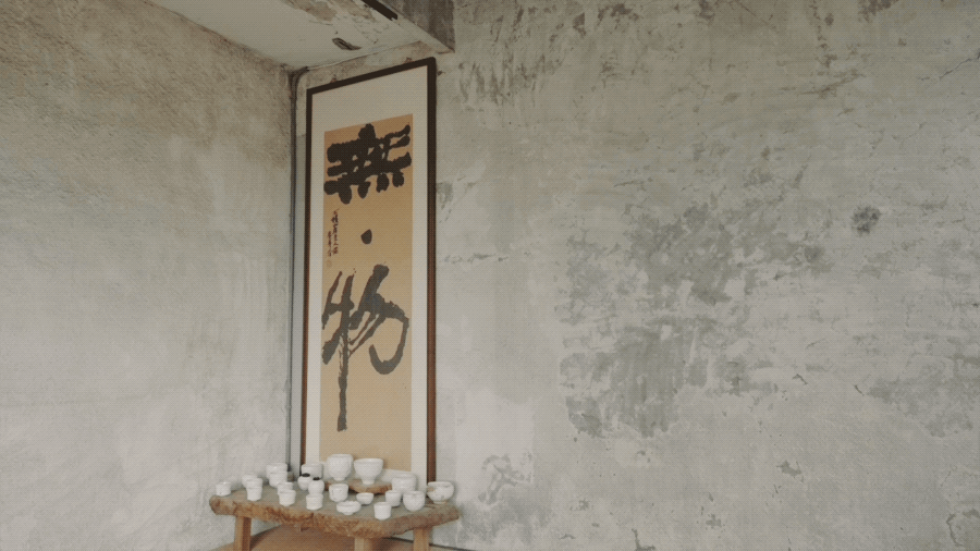 陈九骆把二楼露台改建成茶空间,这也是他认为整栋房子里最适合“见客”的地方。他用榻榻米和废弃的木板布置,让这栋“危楼”出现一种奇妙的氛围:足够破败,又足够雅致。墙上一幅字写着《无一物》,陈九骆说这代表了他此刻的心境。